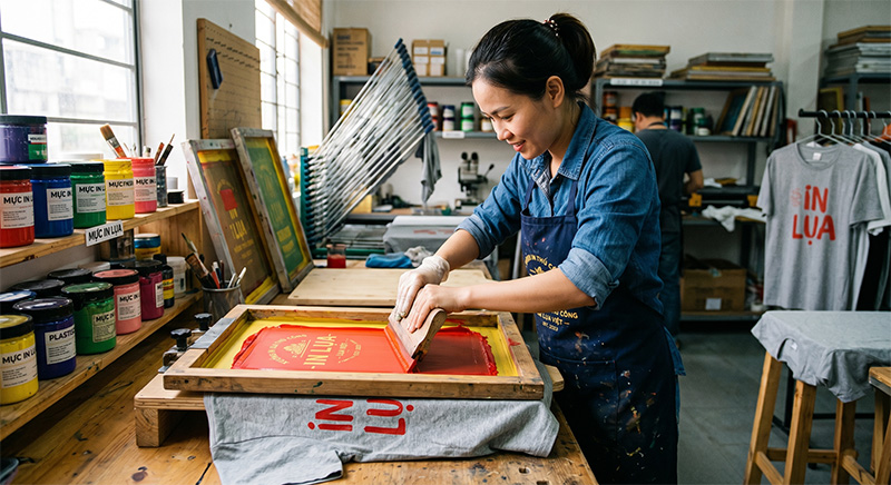 In lụa