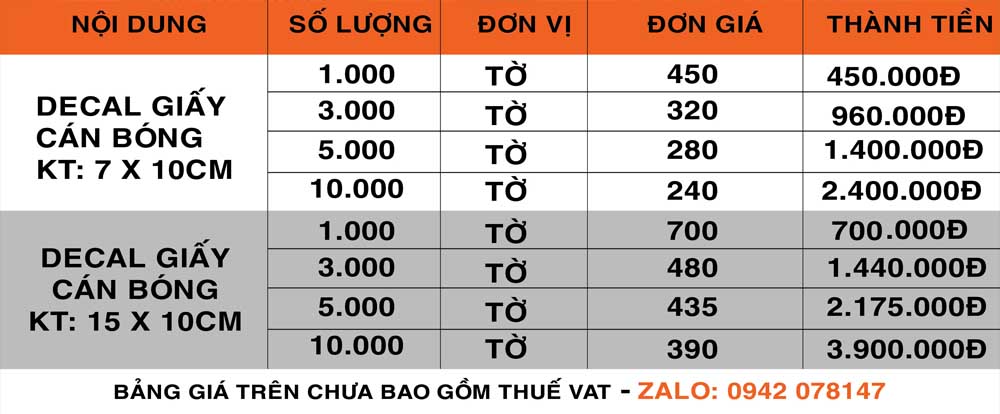Chi phí in tem nhãn decal giấy giá rẻ tại TP.HCM phụ thuộc vào nhiều yếu tố. Dưới đây là bảng tham khảo chung về các yếu tố cấu thành nên giá thành cuối cùng: